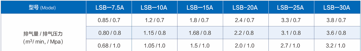 LSB系列(皮帶傳動(dòng))螺桿式空氣壓縮機(jī)技術(shù)參數(shù)(5.5kW-22kW)