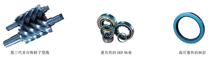卡爾特原裝第三代非對(duì)稱型線雙螺桿主機(jī),軸向進(jìn)氣設(shè)計(jì),效率比第二代提高5%~15%;配置瑞典SKF重載軸承,雙聯(lián)唇式軸封,可靠耐用。軸承設(shè)計(jì)使用壽命8萬h~10萬h,螺桿主機(jī)設(shè)計(jì)使用壽命約20萬小時(shí)。