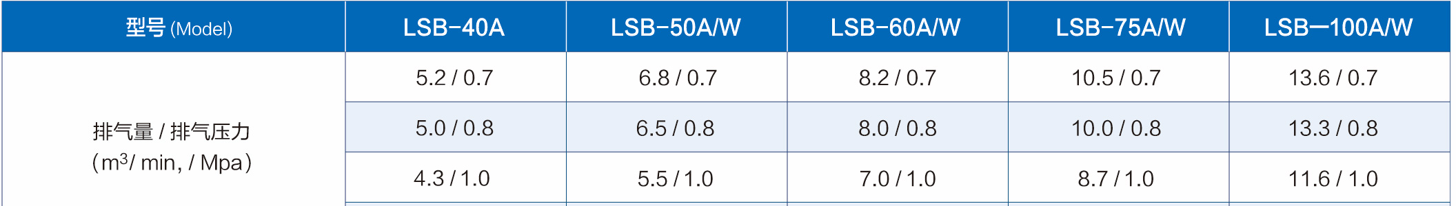 LSB系列(皮帶傳動(dòng))螺桿式空氣壓縮機(jī)技術(shù)參數(shù)(30kW-75kW)